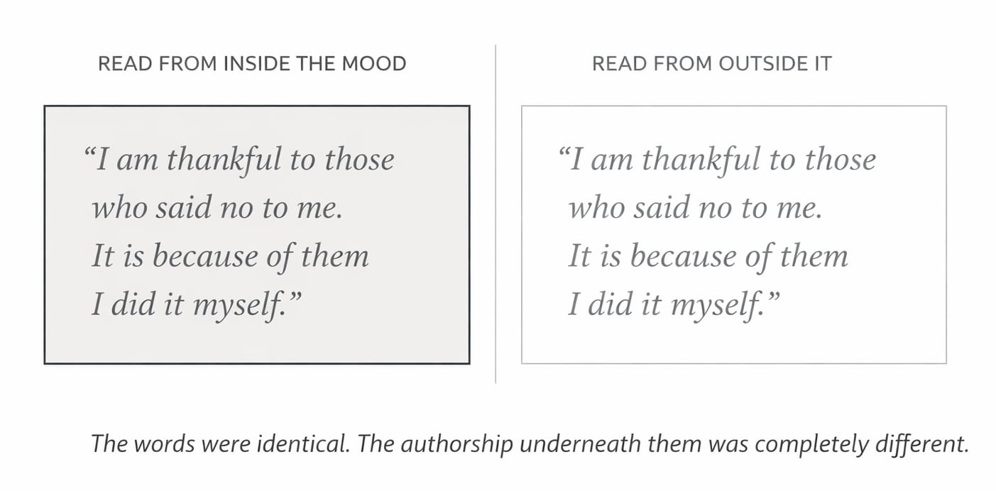 What it revealed was not a technique for managing moods. It wasn't the beginning of a practice. It was something quieter and more unsettling than that.